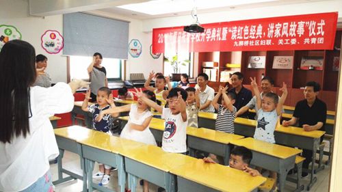 近日,九狮桥社区党委、共青团联合小雅服务中心开展暑期托管学校开学典礼暨“读红色经典,讲家风故事”读书日活动。区关工委副主任蒋守达一行莅临现场,调研了绿色小雅·国学书苑品牌建设,并鼓励孩子们多读经典,进一步丰富自己的精神文化生活。大家诵读经典,交流读书心得,现场气氛十分活跃。