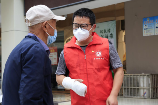 “请大家戴好口罩,排好队,保持安全距离,有序进行核酸检测。”4月27日早晨,在庐阳经开区荣城北苑小区核酸检测点现场,一位手掌被厚厚纱布包裹的红马甲引起了大家的注意,他就是庐阳经开区林店街道市场监督管理所90后党员吴杨杨。